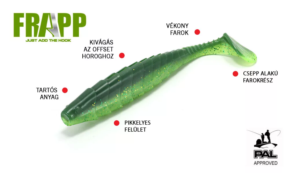 A FRAPP gumihalainak sorozata alkalmas mind a tapasztalt, mind a kezdő pergető horgászok számára és a körülményektől függetlenül mindig hatékony eredményeket biztosít. Ideális választás minden olyan horgász számára, aki megbízható és prémium minőségű csalit keres a pergető horgászathoz.