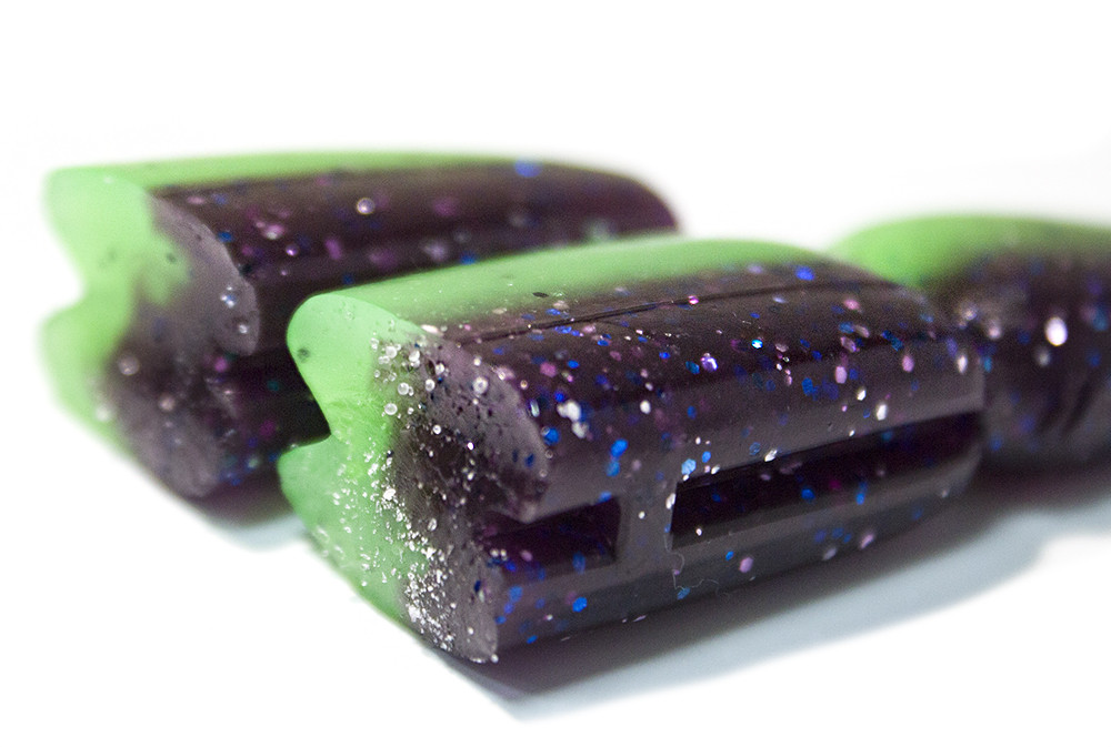 A gumihal alján és hátán van egy vágás - ez lehetővé teszi a csali offset horoggal való szerelésnél a jó elrejtést, illetve kapáskor a hatékonyabb akadást. Ezek akkor fontos dolgok, ha akadós részeken, sűrű növényzetben vagy vízalatti korhadt fa ágak és gyökerek között pergetünk.